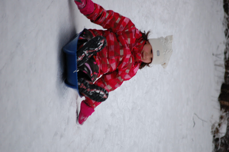 Olemme laskeneet pulkalla, liukurilla ja vatsallaan, pepulla ja laudalla (myös pyörätietä pitkin).